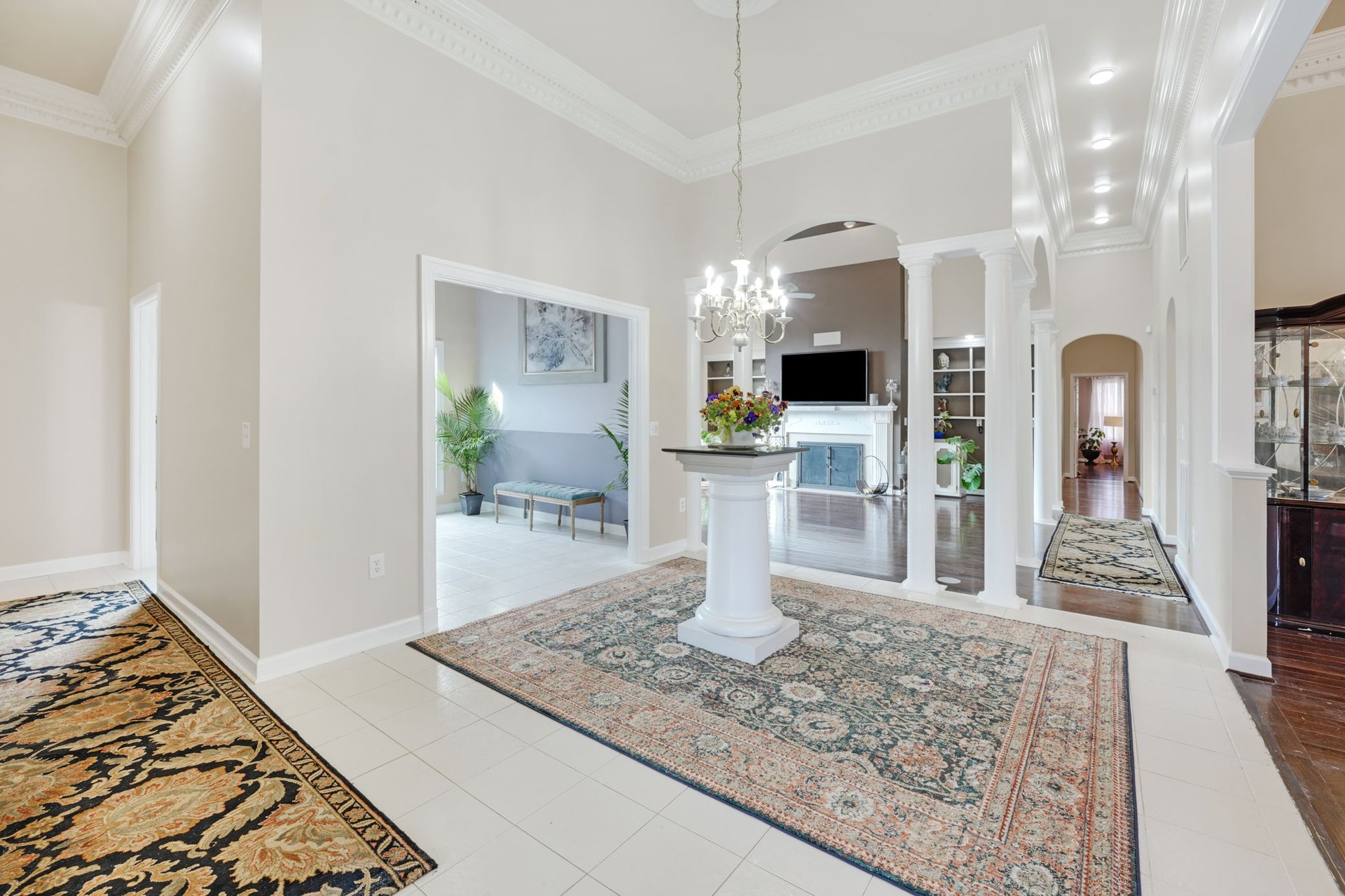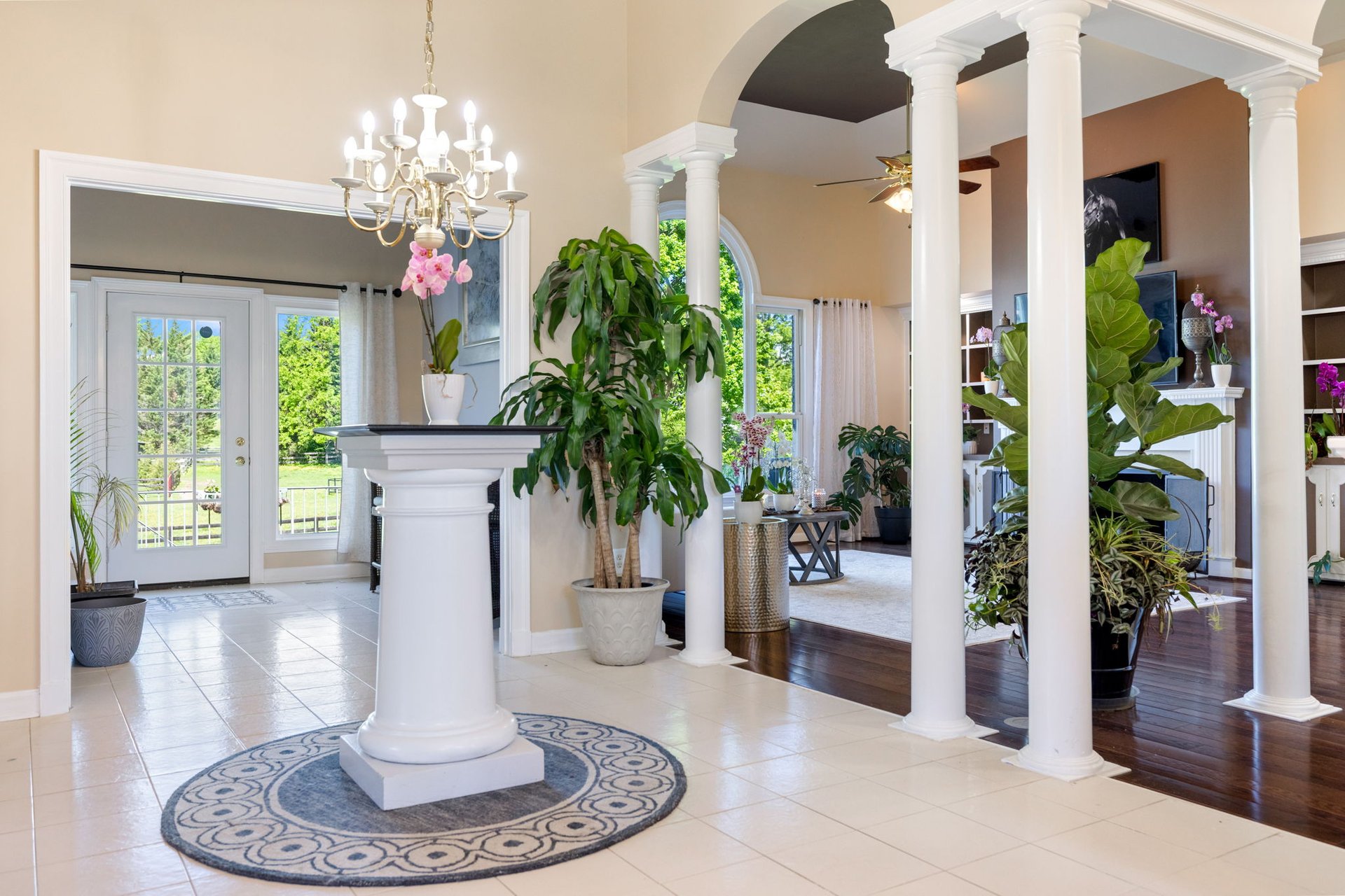 As you approach this stunning property via the paved circular drive, the elegance becomes immediately apparent. This custom all-brick residence, built in 1995, showcases masterful craftsmanship that has only improved with age. The single-level design offers sophisticated living without compromise, featuring soaring ceilings and an open floor plan that floods every room with natural light.
