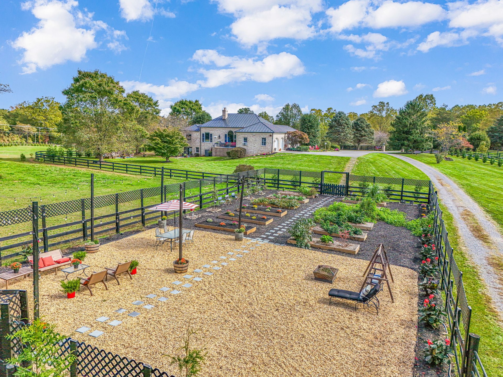 The working portion of the barn currently houses two horses and a delightful mini pony, with facilities designed for both recreational riding and serious equestrian pursuits. The property's fenced "kitchen garden" features raised beds and a pea-graveled gathering area, perfect for those who appreciate farm-to-table living.
