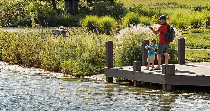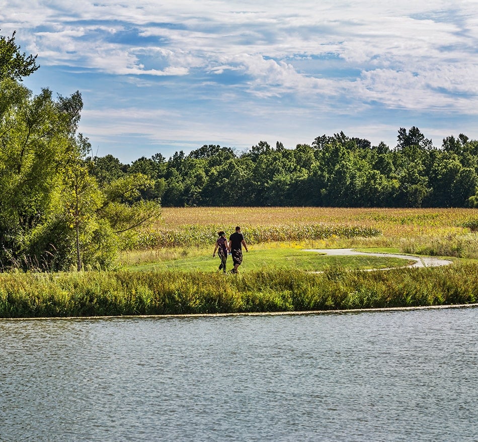 The extensive trail network weaving through forest and farmland provides perfect routes for morning runs or evening walks. The 7-acre lake invites paddleboarding enthusiasts, while the resort-style pool at the Sycamore House clubhouse offers a refreshing retreat. For families, the community features everything from disc golf courses to dog parks, an amphitheater, and the beautiful Everfield Community Park.